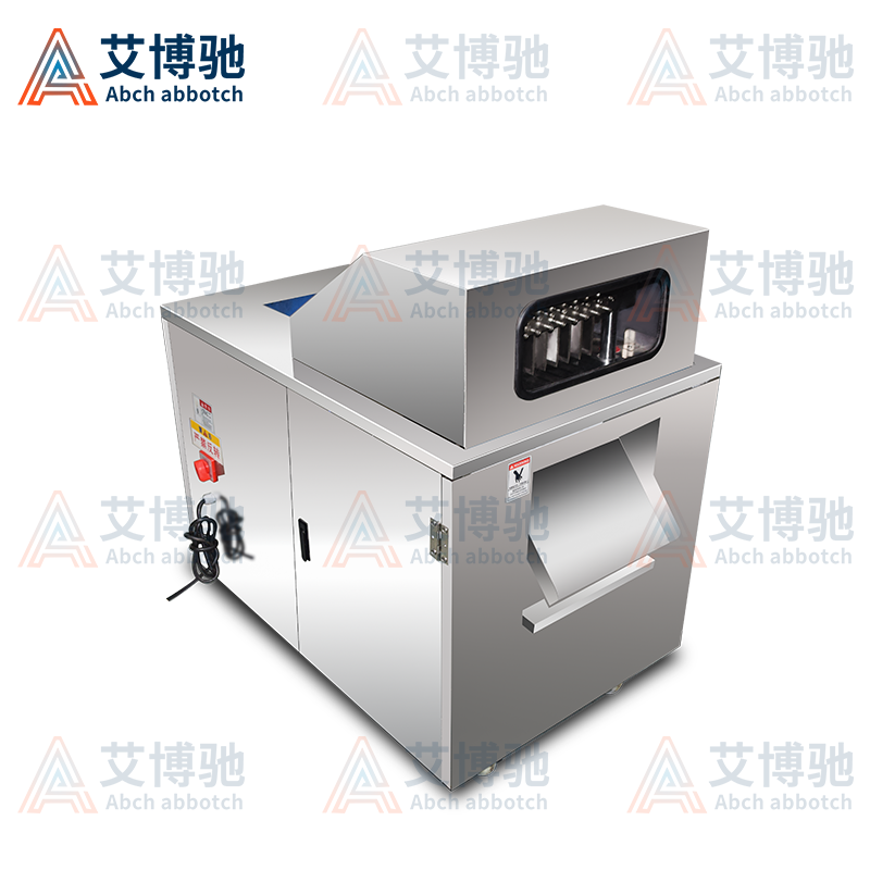 艾博馳ABCH-13A禽肉類剁塊機適合禽類,魚類的剁塊,剁段需求,輸送裝置采用單片食品級PE材質膠板設計,可單片更換,非常方便,壓料輸送裝置采用針式鏈條設計,有效防止物料打滑后退或輸送不均勻等弊端。丁刀組丁刀刀距寬度可定制規格(2cm、2.5cm、3cm、3.5cm)等,標配3CM,最小2cm,實際成品小于丁刀刀距0.2cm,長短1cm-5cm可調,物料需冷凍,效果更佳!