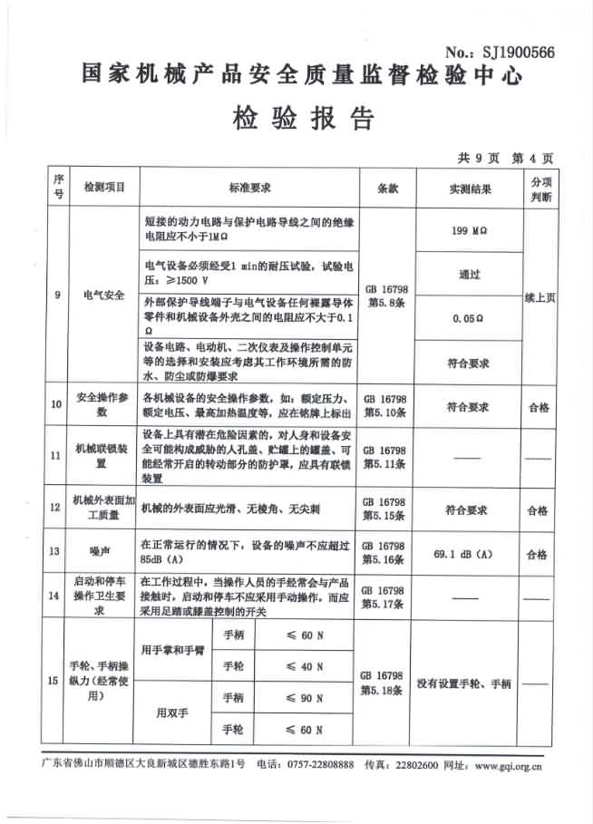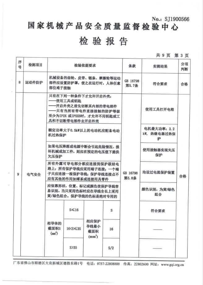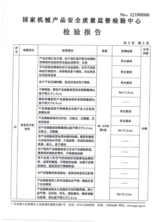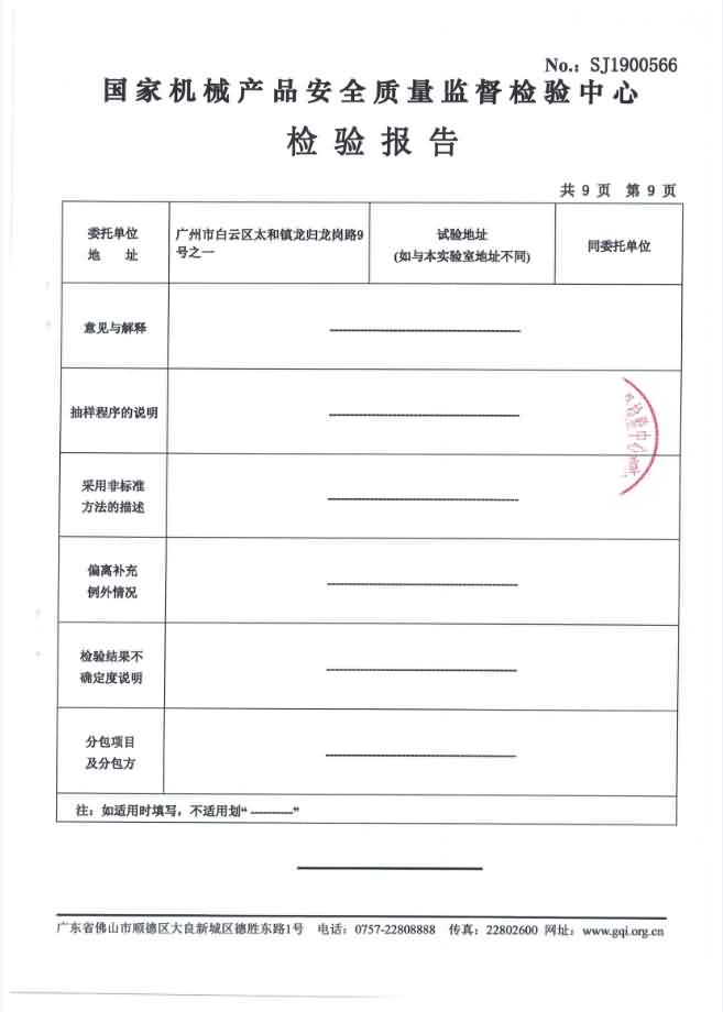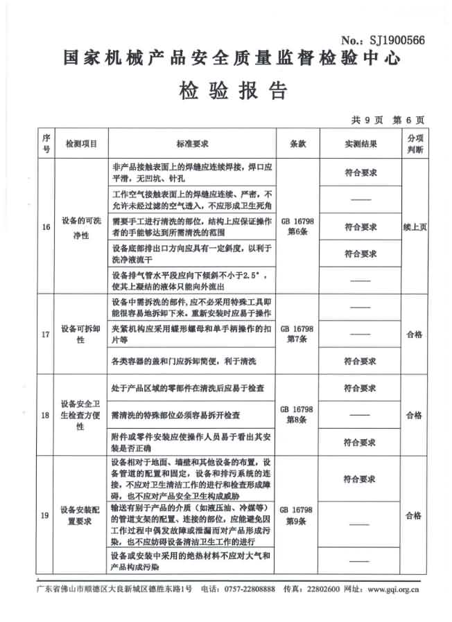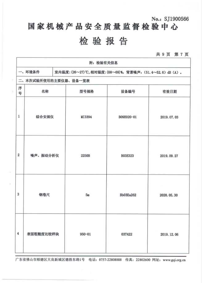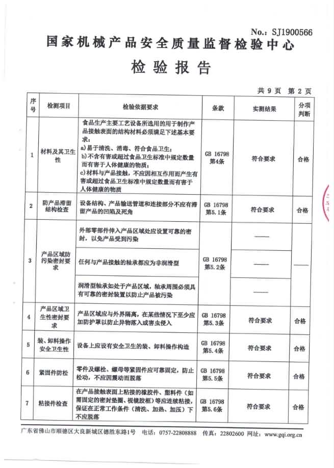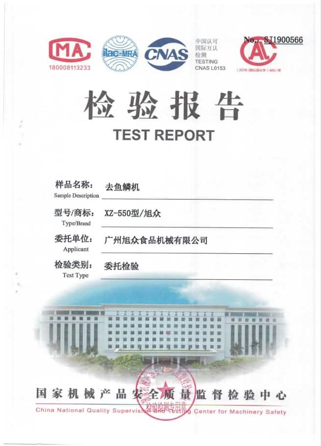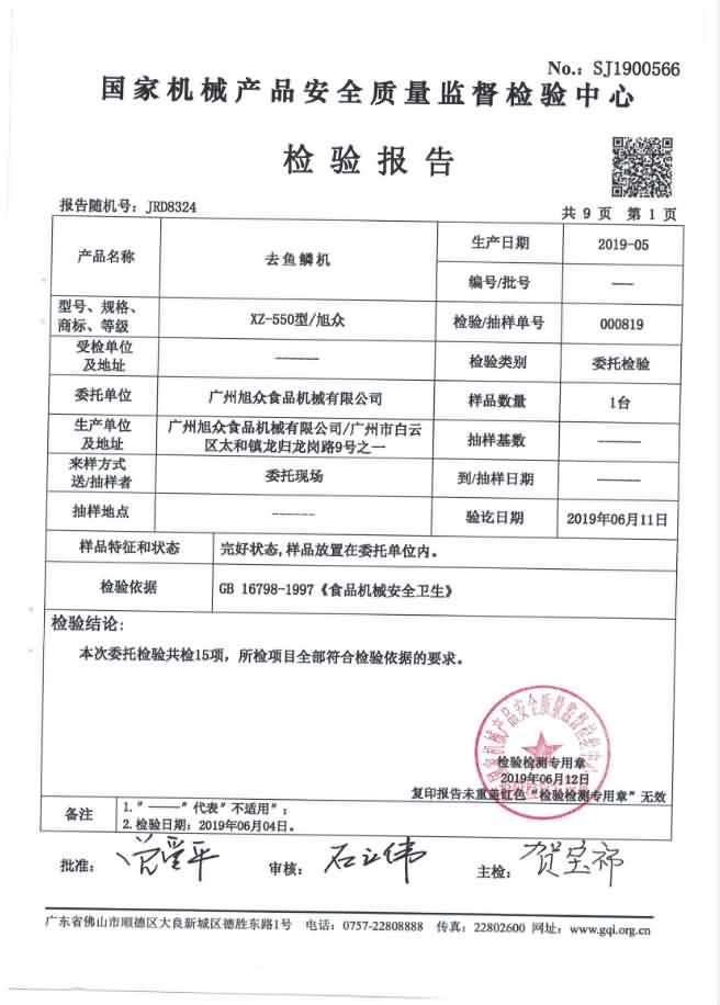 XZ-550去魚鱗機檢驗報告