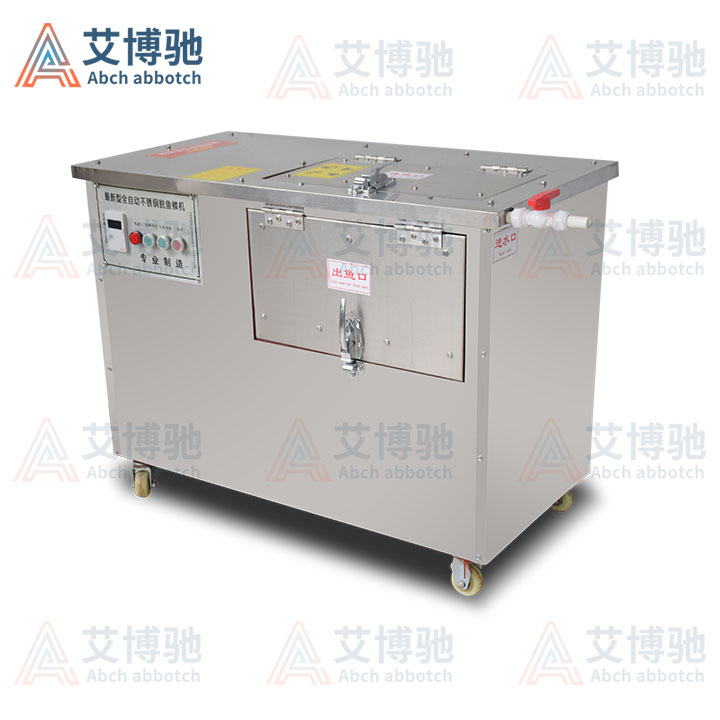 艾博馳ABCH-55去魚鱗機廣泛應用于魚類銷售市場、飯店、魚類加工廠等等,本產品不會對魚頭、魚尾、魚鰭造成損傷。該機器利用旋轉效應,使魚在運動中去鱗,去鱗干凈。